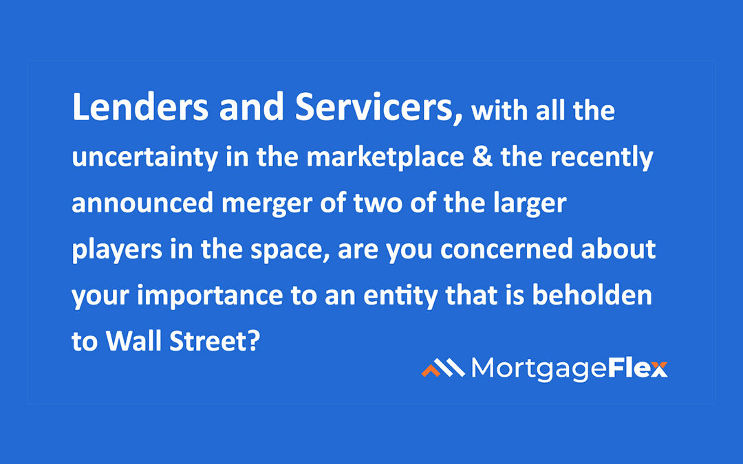 Lenders and Servicers, with all the uncertainty in the marketplace and the recently announced merger of two of the larger players in the space, are you concerned about your importance to an entity that is beholden to Wall Street? Maybe it is time to go back to your roots of working with like-minded entrepreneurs that once dominated the LOS and Servicing space? Companies that want your input and let you get involved in the direction of your systems? We are investing heavily in the latest tech stack and we are partnering with many of the leading fintech providers, and as we always say we report to you, not Wall Street. Come find out why lenders come to us to be different than everyone else. Mortgage/HELOC/Consumer/Chattel/Servicing all in one system. All are backed by the industry’s first Bilingual consumer-facing mobile and portal tools and the first true web-based servicing platform. Contact me, John McCrea, SVP, Business Development jmccrea@mortgageflex.com
